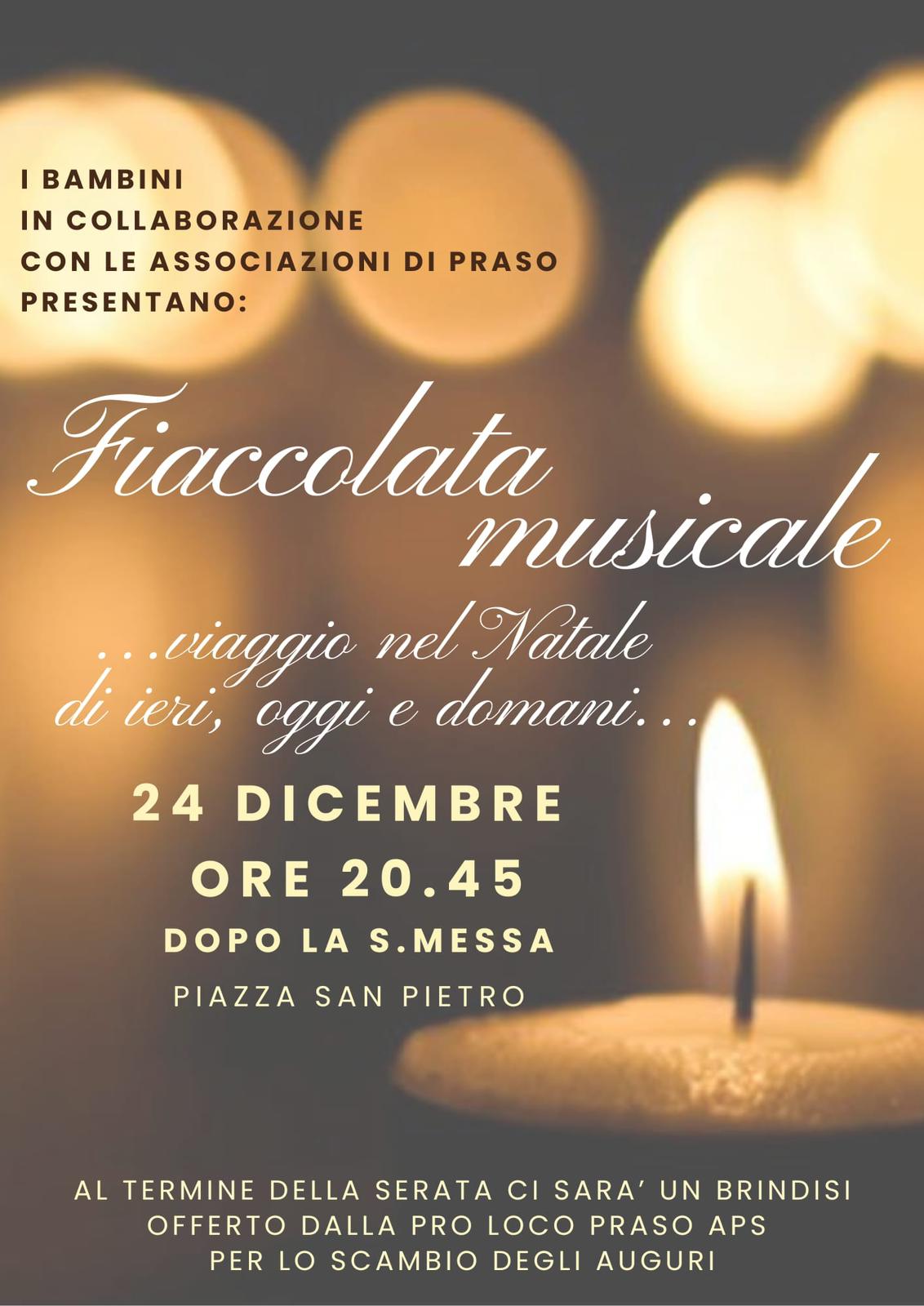 Al termine della serata seguirà un momento di brindisi offerto dalla Pro Loco Praso APS per lo scambio degli auguri.